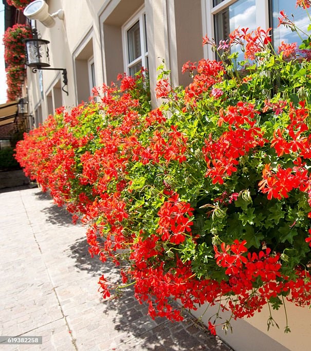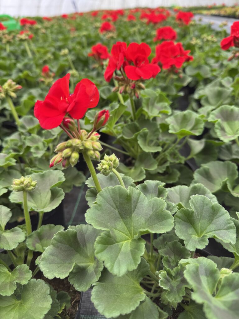 Pelargonia stojąca o intensywnie czerwonych kwiatach to klasyka wśród roślin balkonowych i tarasowych. Charakteryzuje się zwartym, wzniesionym pokrojem oraz dużą odpornością na warunki atmosferyczne.