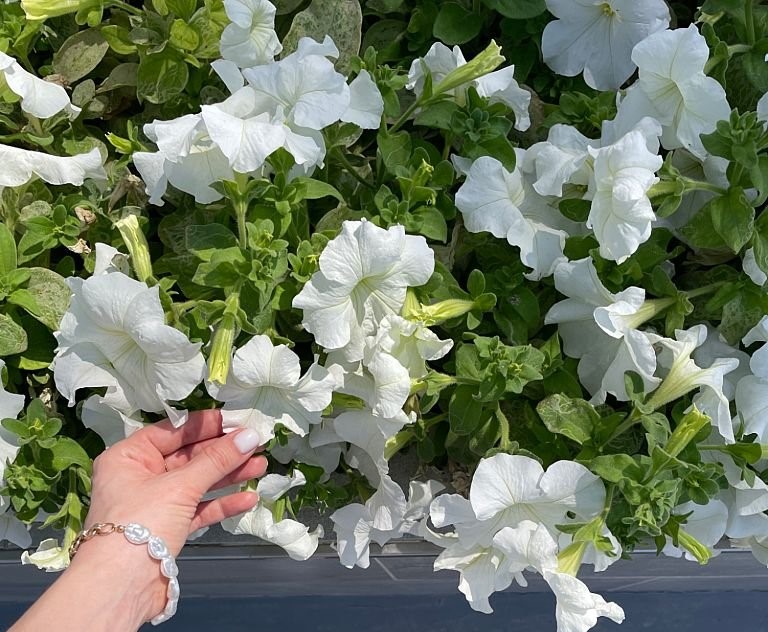 Surfinia Conchita Grande White to elegancka odmiana surfinii, której kwiaty mają czysty, biały kolor, który rozświetla przestrzeń i nadaje jej subtelną, ale efektowną dekorację.